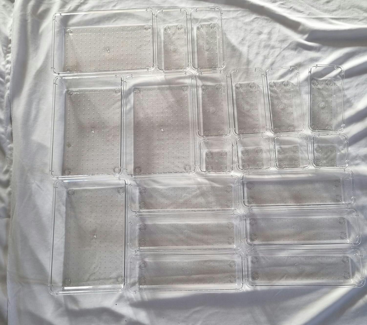• Complete 10-Piece Set: Includes a versatile mix of sizes (4 small, 2 square, 2 medium, and 2 large trays) to perfectly customize any drawer layout.
