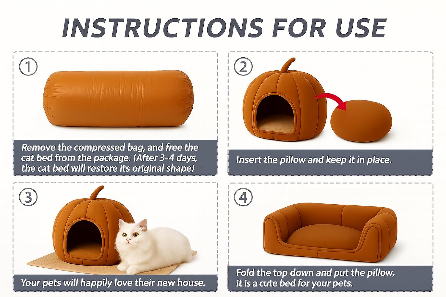 Premium Soft Velvet Pumpkin Shape House for Cats & Puppies