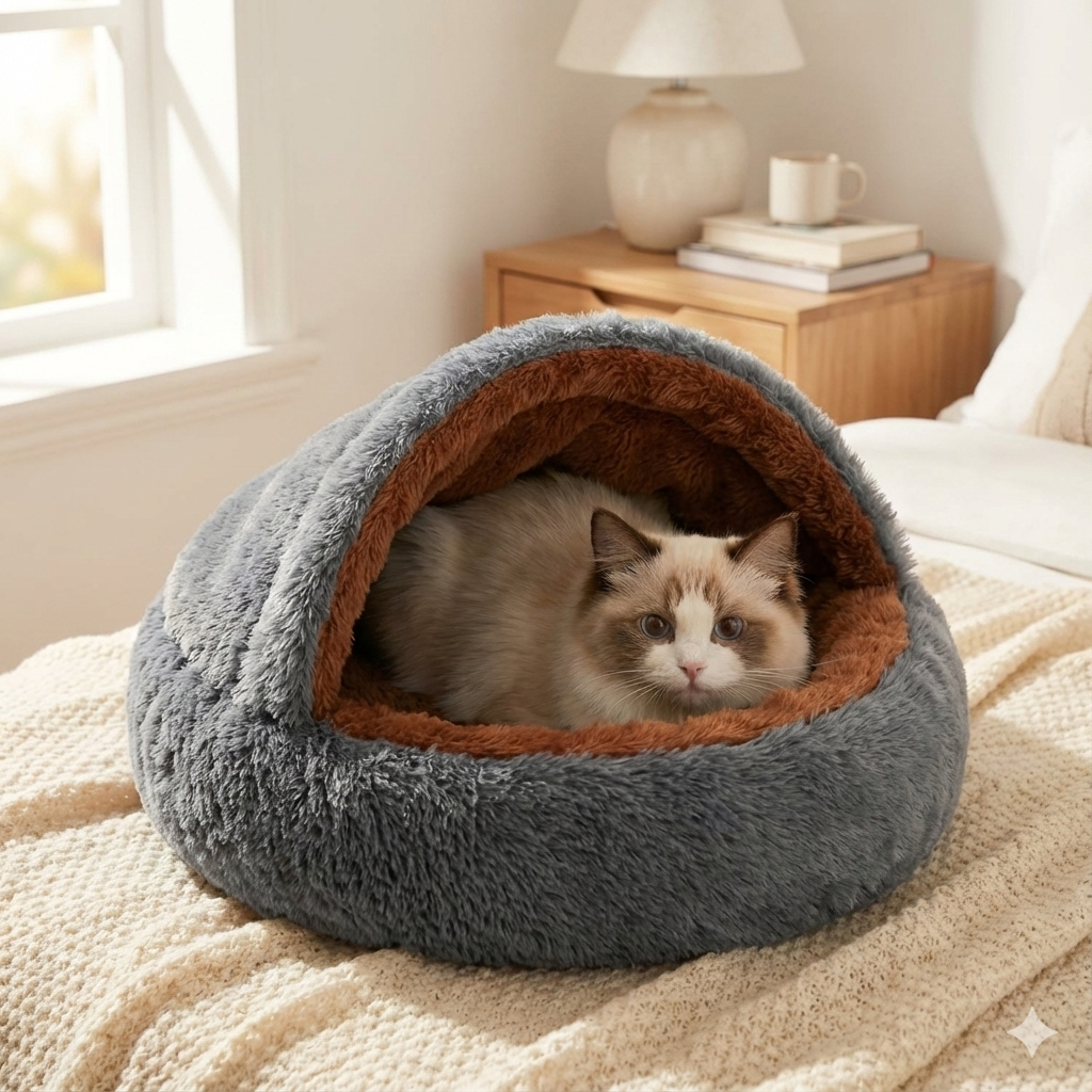 Cozy pet bed designed for comfort throughout the year — warm in cool months and breathable in warm weather